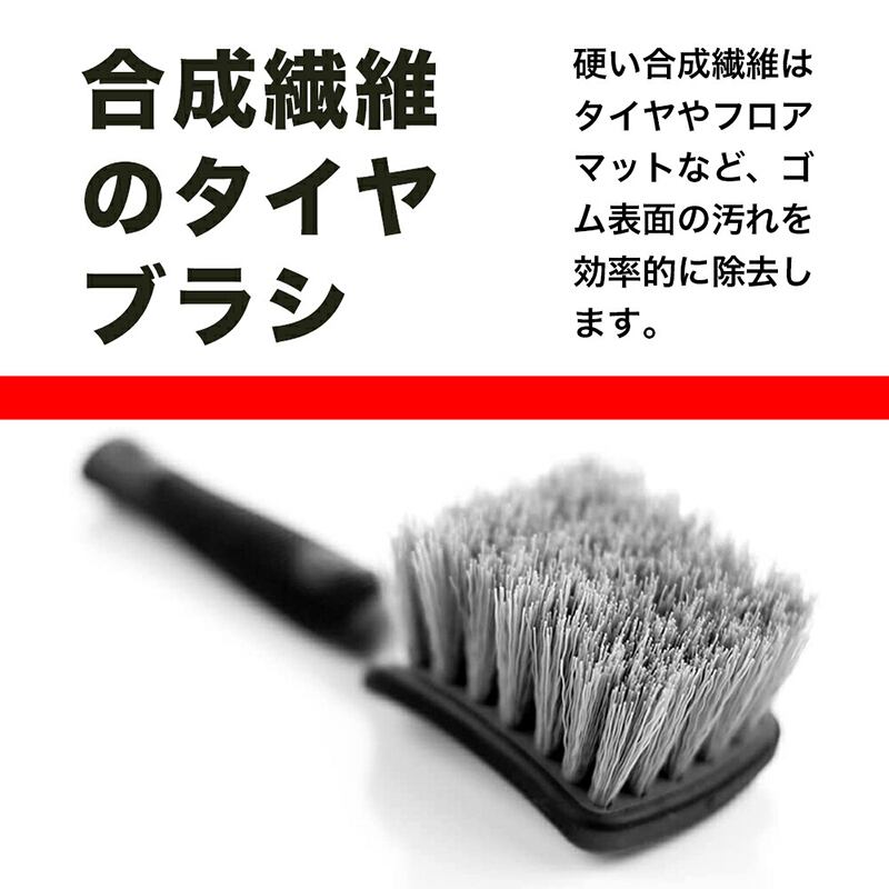 ●硬い合成繊維はタイヤやフロアマットなど、ゴム表面の汚れを効率的に除去します。