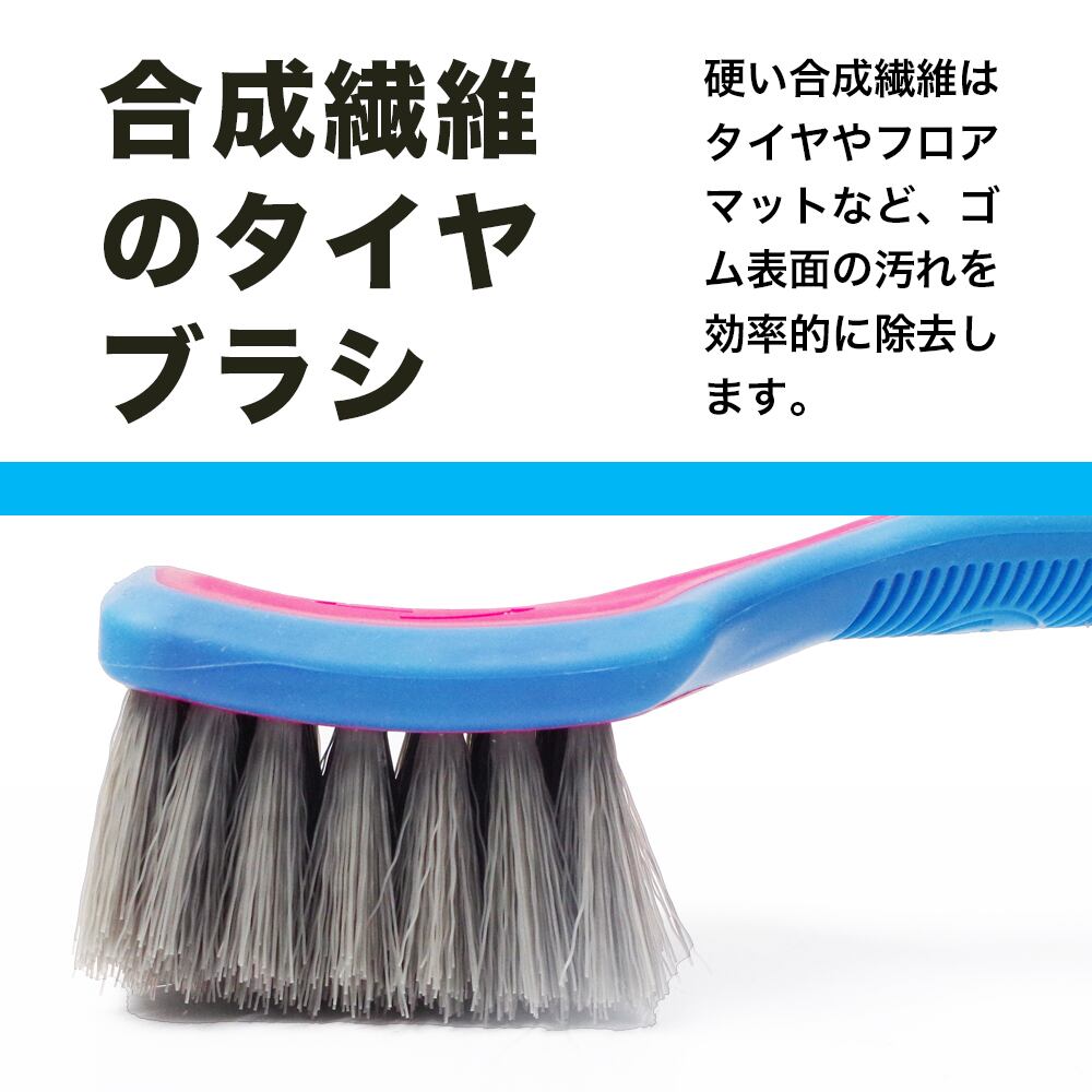 ●硬い合成繊維はタイヤやフロアマットなど、ゴム表面の汚れを効率的に除去します。